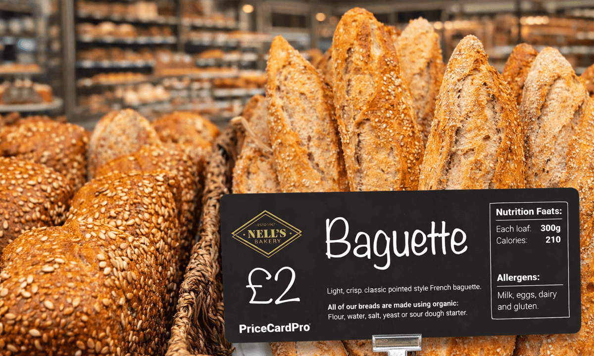 PriceCardPro FLEX+ maakt professioneel labelprinten eenvoudig en efficiënt voor winkeliers wereldwijd. Maak batches van tot wel 100 labels tegelijk, elk met een verlengde lengte van 140 mm—perfect om alle vereiste productdetails weer te geven, inclusief voedingswaarden en allergeneninformatie. Dankzij de duidelijke, gemakkelijk leesbare afdruk krijgen uw klanten snel toegang tot de informatie die ze nodig hebben, wat hen vertrouwen geeft in hun aankoopbeslissingen.